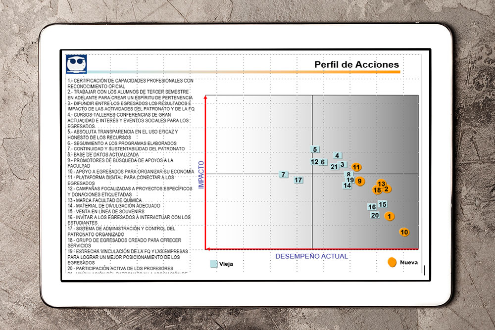 El siguiente paso planeado por el Patronato es idear estrategias para que los egresados apoyen a la Facultad. Después de listar las acciones y calificarlas por importancia resultó lo siguiente: